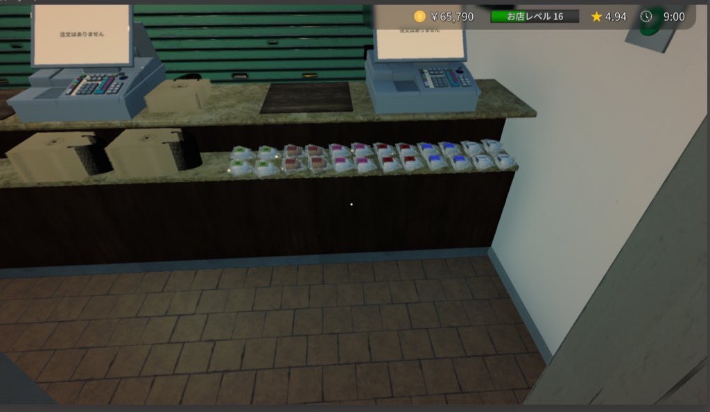 シャッターを開けると時間が進み、お客さんが来てくれるようになります。