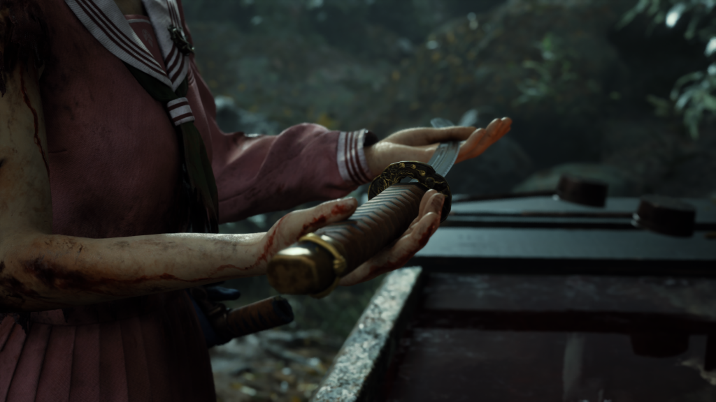 ②の通りに進めていれば、どちらのクリアデータでも霊刀を所持している状態でクリアしているはずですので、参道クリア後、凛子の家に向かう途中で怨念つきの霊刀を入手することが出来ます。