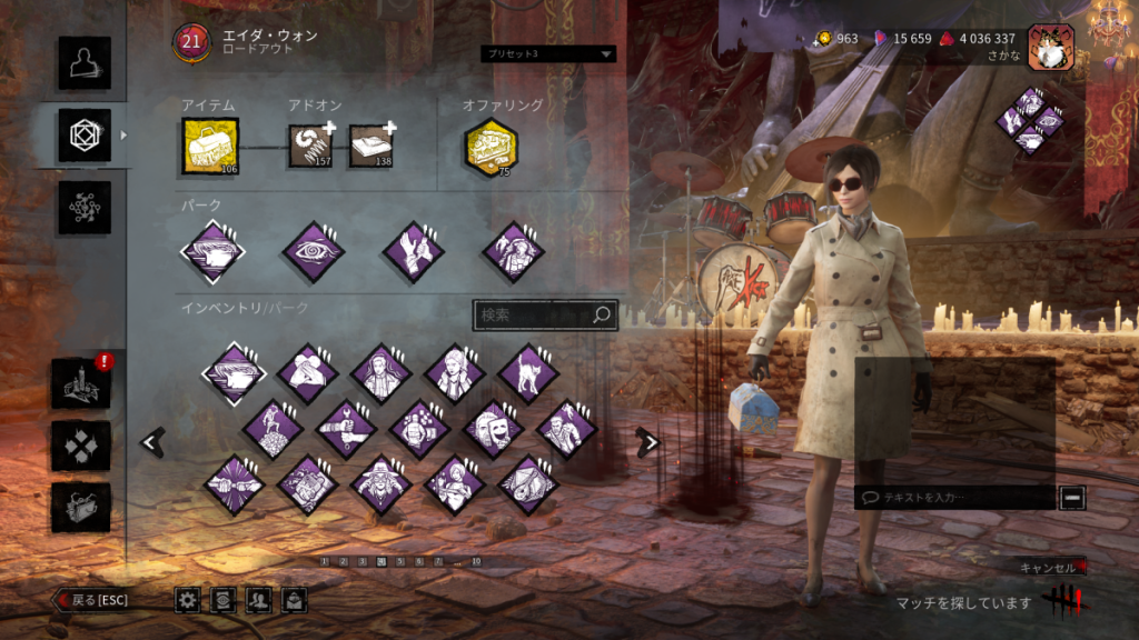 DbDを遊んでいるとどうしてもチェイス用のパークに偏りがちですが、「今日は発電機を頑張るぞ!」という日はこのような構成で遊んでみるのはいかがでしょうか?